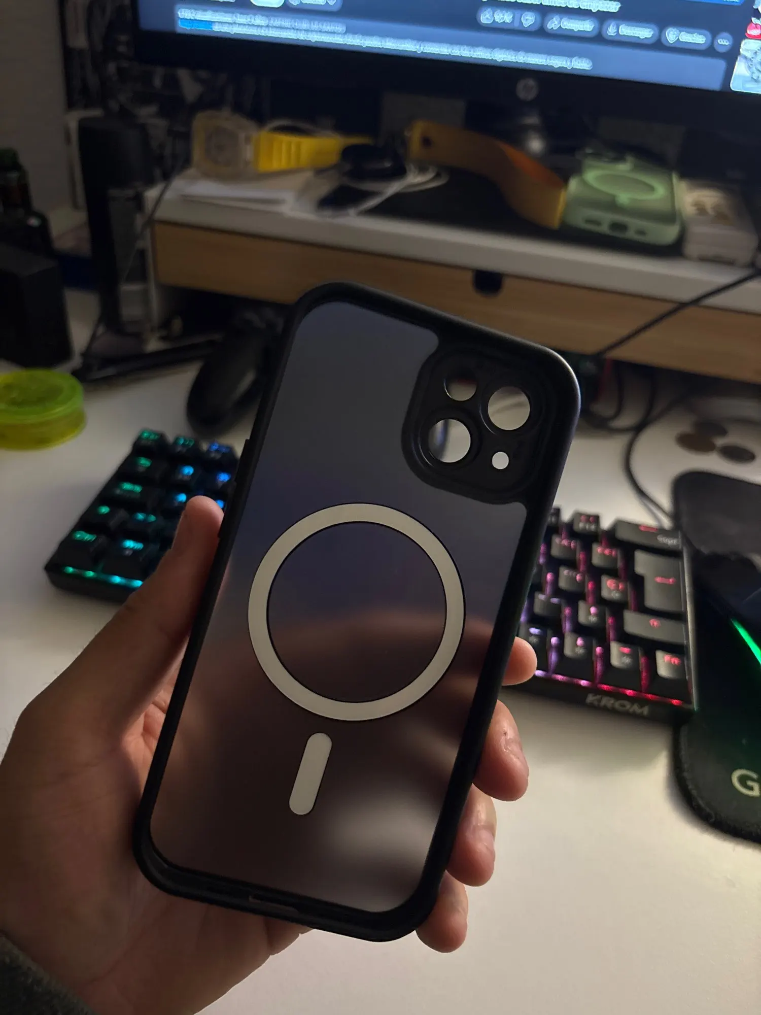 Buen material, resistente. Encaja bien con iPhone 16