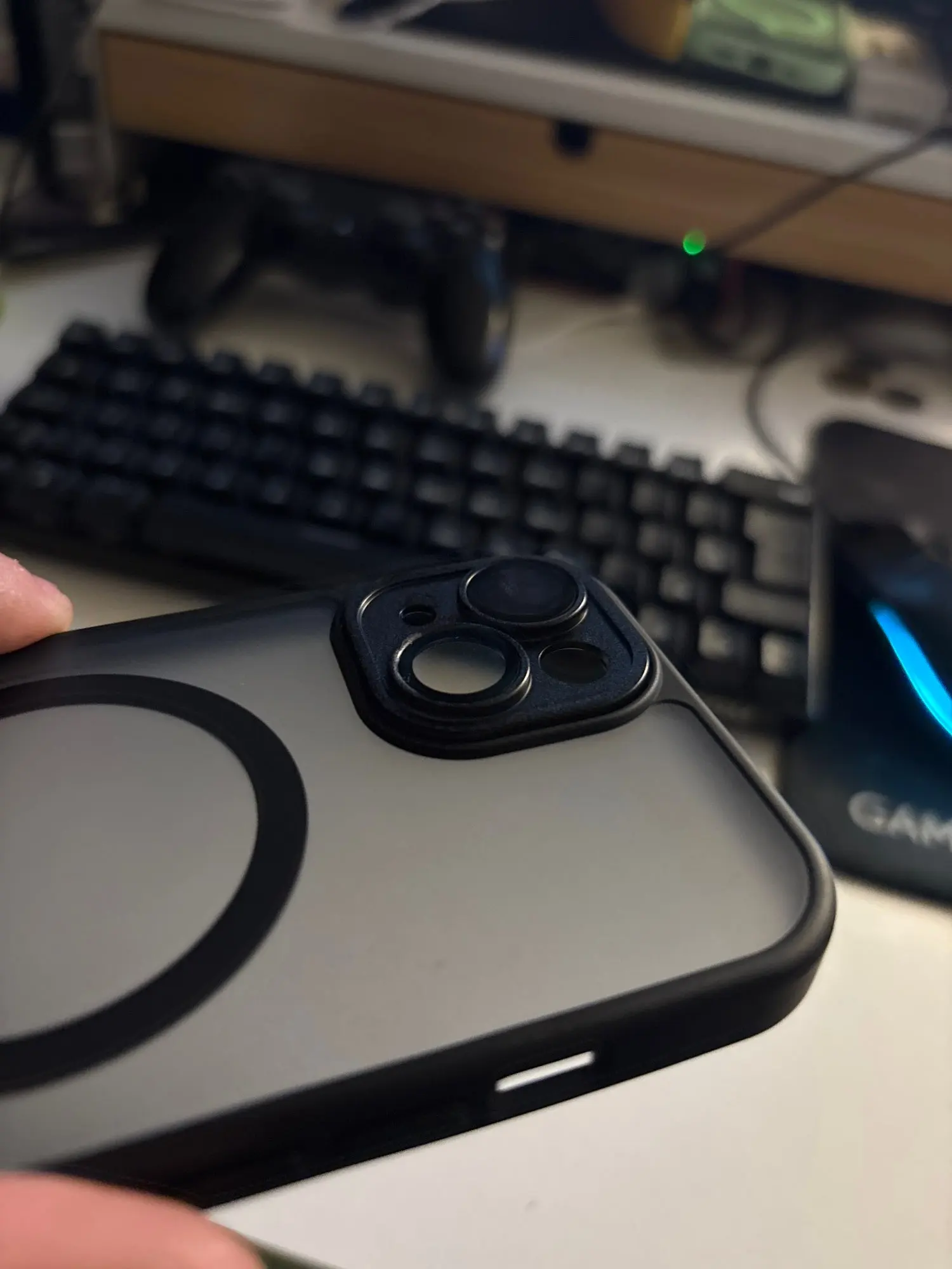 El caso fue alcanzado a tiempo. All fits nice mate no se quedan las marcas de los dedos. Protección adicional en las lentes de la cámara es buena en la mano. No es resbaladizo